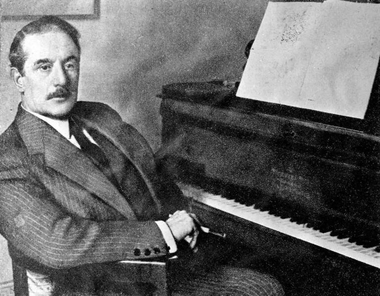 De Italiaanse Giacomo Puccini (1858-1924) werd geboren in een familie van beroepsmusici. Zijn vader stierf toen Giacomo nog heel jong was en Giacomo werkte toen hij 14 was al als kerkorganist in verschillende kerken. Toen hij een opvoering van Verdi’s opera Aïda zag, was hij verkocht: hij wilde ook operacomponist worden en ging studeren in Milaan.