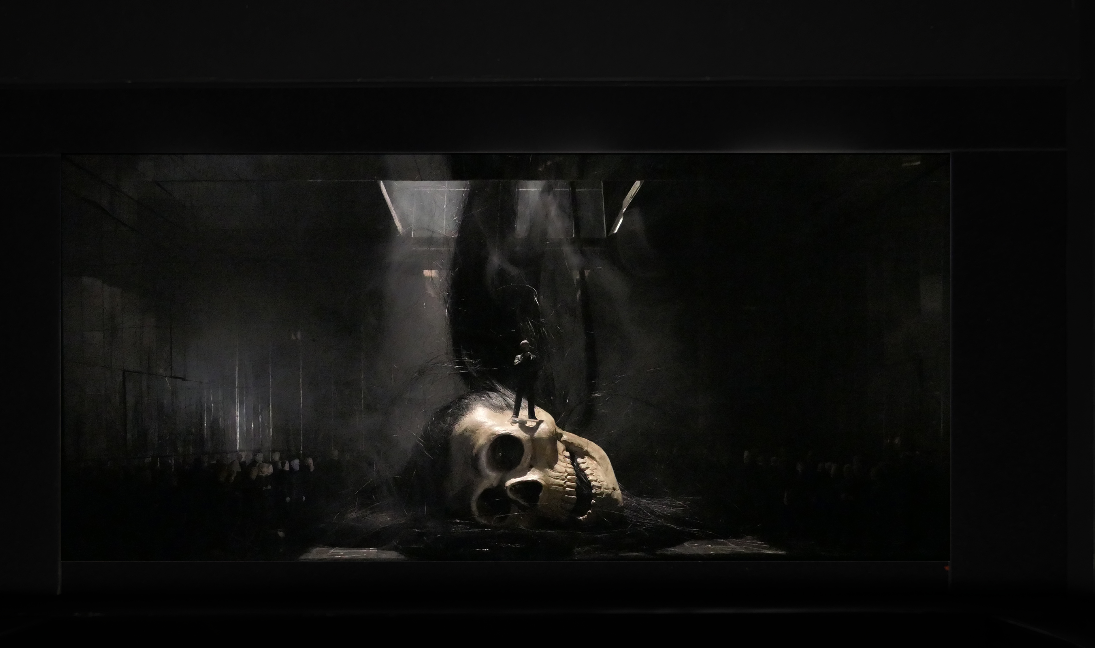 Je ziet hier een toneelbeeld van een eerdere operavoorstelling van Kosky. Sommige elementen hiervan zul je terugzien in Turandot, zoals een skelet, het donker, bloed. Nu je weet dat Kosky het onderbewuste wil aanspreken van zijn publiek; welke symbolen zie je hier op het toneel en wat zou dat los kunnen maken bij de toeschouwer?